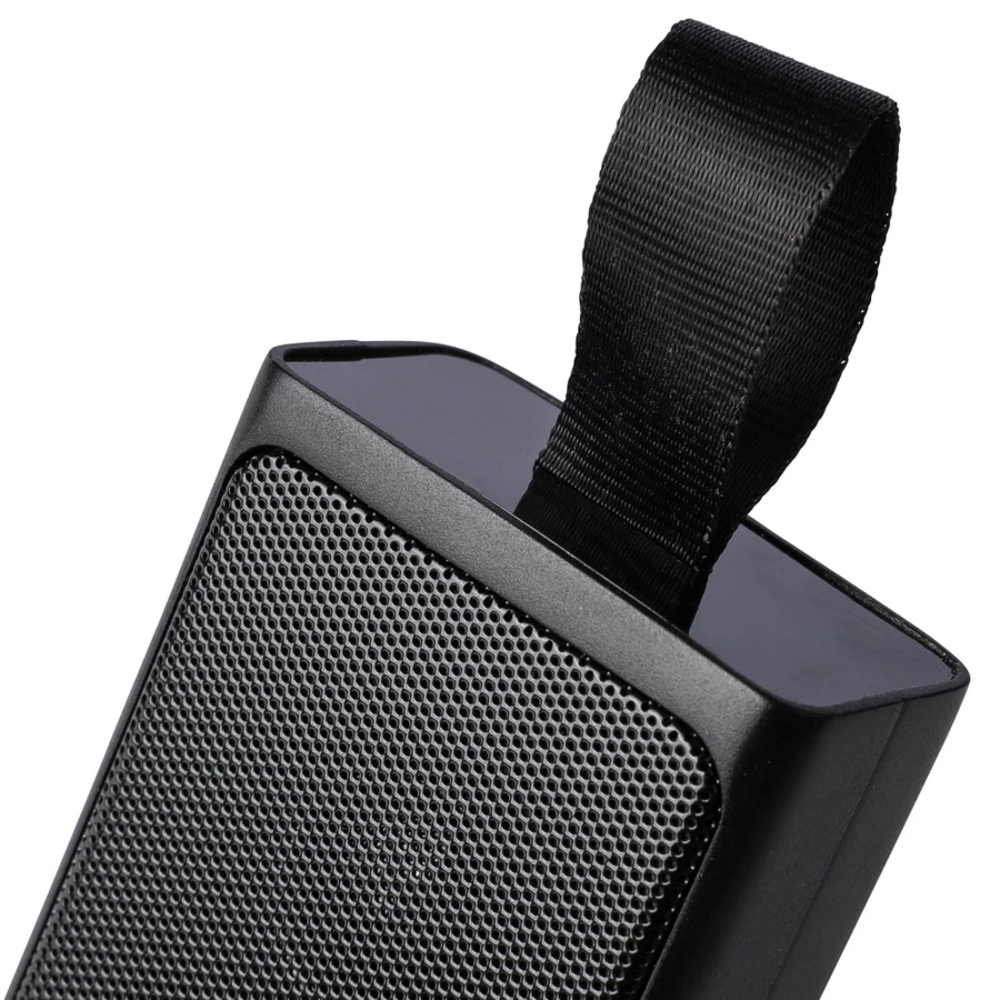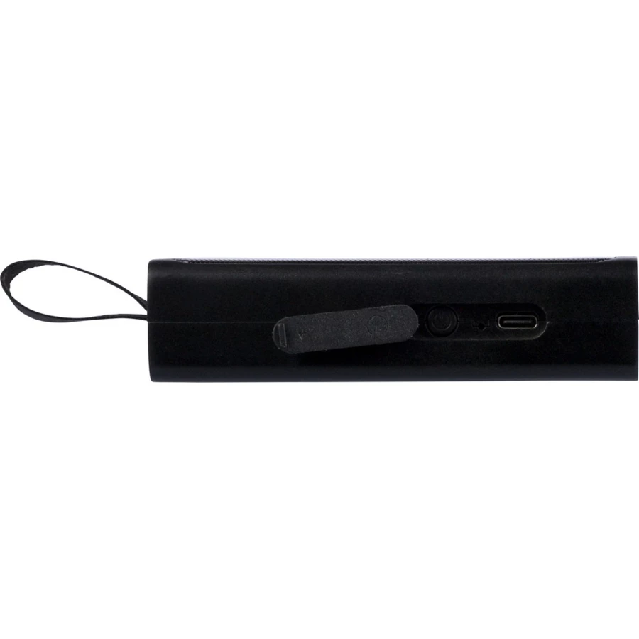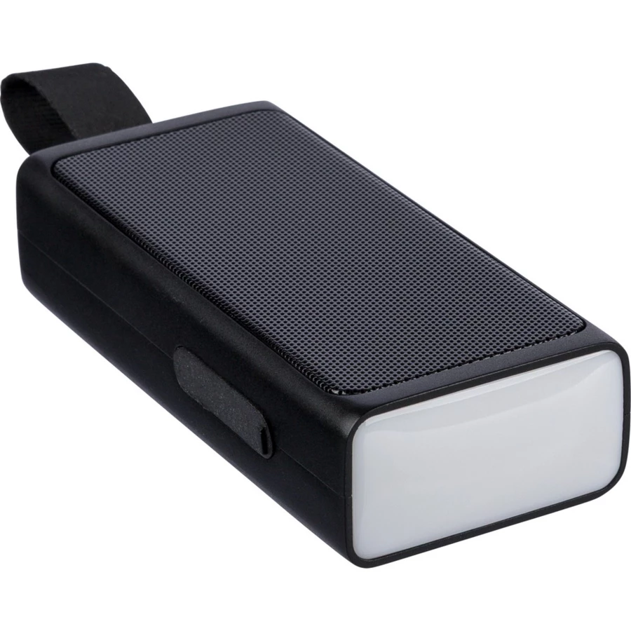Głośnik bezprzewodowy 5W, metalowa siatka, uchwyt ułatwiający noszenie, latarka (lampka COB i LED), wejście 5v/500mA, BT5.4, bateria 500 mAh, zapakowany pojedynczo w brązowy kartonik, produkt wykonany z ABS z recyklingu, metalu i silikonu