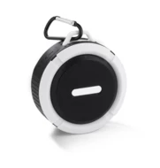Mały głośnik z przyssawką posiadający klasę wodoszczelności IPX4, czyli całkowitą ochronę przed spryskiwaniem i zachlapaniem wodą z różnych kierunków z natężeniem do 10 litrów na minutę. Świetnie nadaje się do użytku turystycznego i na co dzień np. przy lekkim deszczu. Możliwość wykorzystania głośnika jako zestawu głośnomówiącego. Odtwarzanie muzyki jest możliwe za pośrednictwem bluetooth (wersja 4.2) lub karty micro SD. W zestawie kabel do ładowania z końcówką microUSB i karabińczyk. Posiada metalową płytkę przeznaczoną do wykonania znakowania. Produkt jest zgodny z odpowiednimi dyrektywami Unii Europejskiej oraz posiada znak CE. Dane techniczne: Moc wyjściowa: 3W x 1 Napięcie: 5V Stosunek S/N: ≥ 70 dB, czas pracy: 1-1,5 godziny, pojemność baterii 300mAh