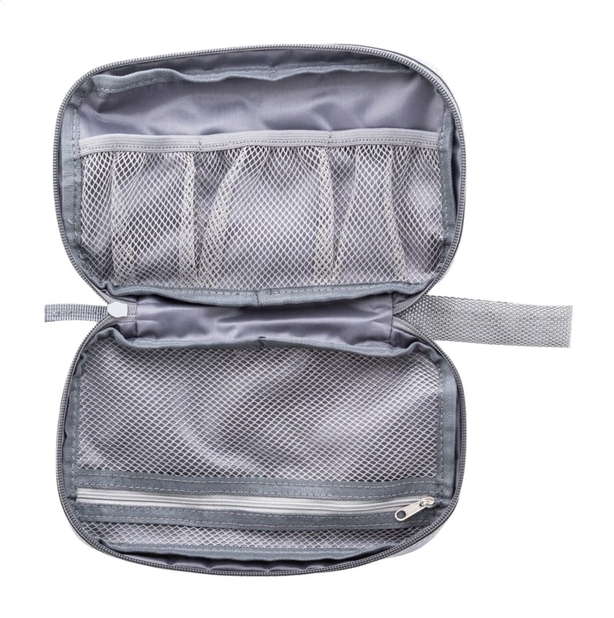 Zamykany na suwak organizer do kabli RPET z przegródkami z siateczki i kieszenią z przodu zapinaną na suwak. Poliester RPET 600D z charakterystyczną metką RPET.