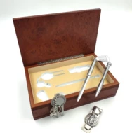 Wszystkie elementy zestawu są wykonane z wysokiej jakości materiałów i zapakowane w eleganckie drewniane pudełko z kremową wypraską. To idealny prezent na każdą okazję!