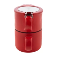 Wysokiej jakości ceramiczny zestaw do herbaty z matowym wykończeniem. W zestawie czajniczek (430 ml) z pokrywką ze stali nierdzewnej i sitkiem do herbaty, zaprojektowany tak, aby można go było ustawić na pasującym kubku (400 ml). W pudełku z papieru kraft.