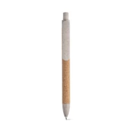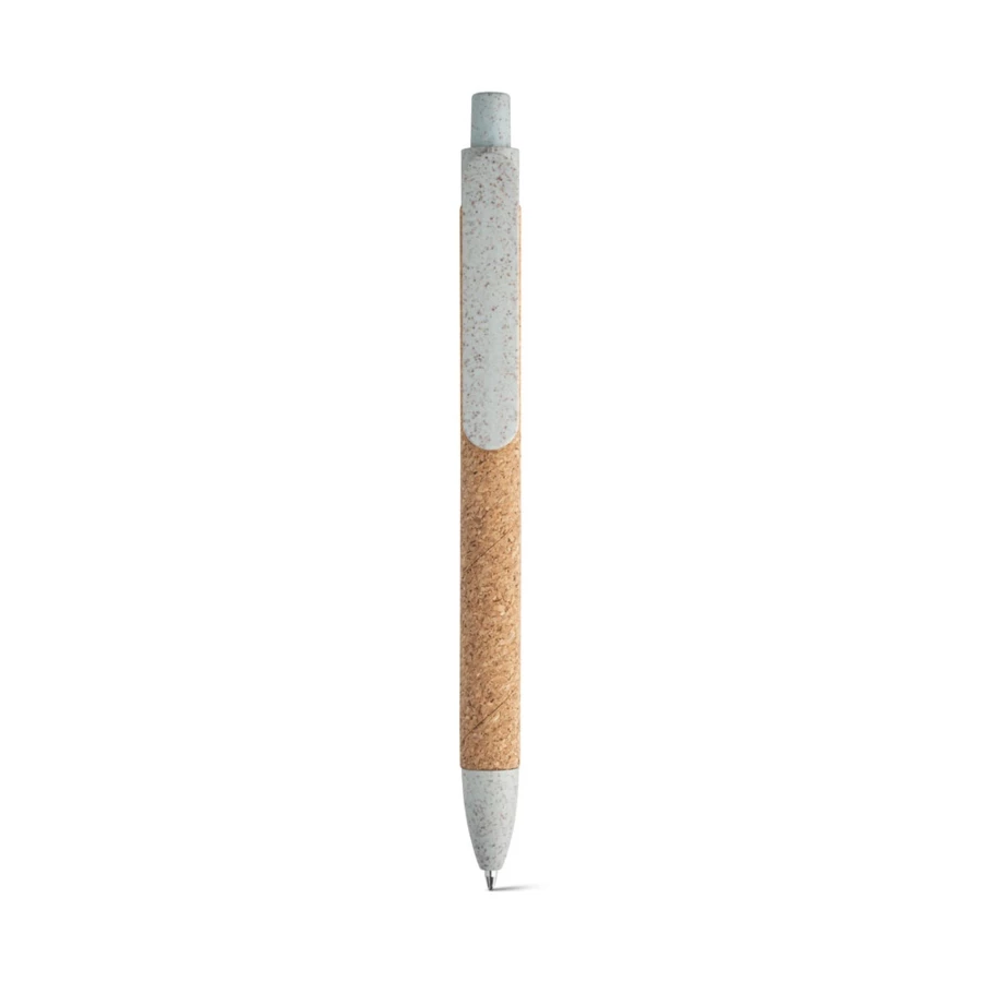 Korkowy długopis z klipsem i kolorowymi elementami z włókna słomy pszenicznej i PP. Niebieski wkład. Ponieważ produkt jest wykonany z naturalnych materiałów, kolor produktu oraz wynik drukowania mogą się różnić w zależności od produktu. ø11 x 140 mm