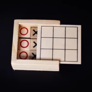 Gra kółko i krzyżyk w drewnianym pudełku.