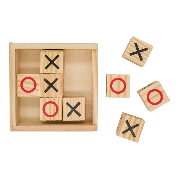 Gra kółko i krzyżyk w drewnianym pudełku.