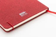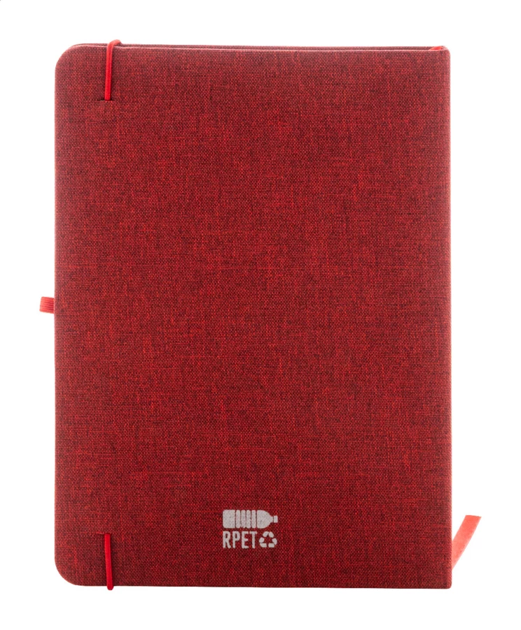 Notes w okładce z poliestru RPET, ze 100 gładkimi kartkami. Z dopasowaną kolorystycznie gumką, zakładką i uchwytem na długopis. Rozmiar A5.