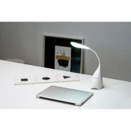 Lampa biurkowa z wbudowanym głośnikiem. Dzięki elastycznemu ramieniu i dotykowemu przyciskowi włączania/wyłączania można regulować intensywność światła (18 diod LED) w zależności od codziennych potrzeb.Materiał: ABS z recyklingu (100% rABS)Transmisja bezprzewodowa: BT v4'2Moc dźwięku: 5 WWejście: 3.5 mm, USB-C (5 W)Pojemność: 1200 mAhLumeny: 100 lmPrzybliżona żywotność baterii: tylko światło lub tylko głośnik 5 godzin, światło i głośnik jednocześnie 2.5 godzinyPrzybliżony czas ładowania: 2 godzinyZawartość: kabel USB-A/USB-C, kabel audio 3.5 mmOpakowanie: pudełko prezentowe.Wymiary: 100 x 225 x 100 mm | Pudełko: 110 x 235 x 105 mm