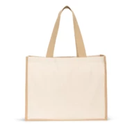 Torba płócienna (320 g/m²), z laminowanym dnem i bokami z juty (350 g/m²) w naturalnych odcieniach. Posiada uchwyty o długości 60 cm. 420 x 330 x 190 mm
