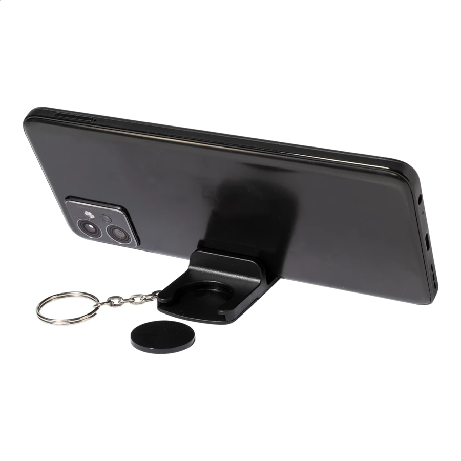 Brelok na monety z recyklingowanego ABS z uchwytem na telefon. Rozmiar monety: ø23×2 mm.