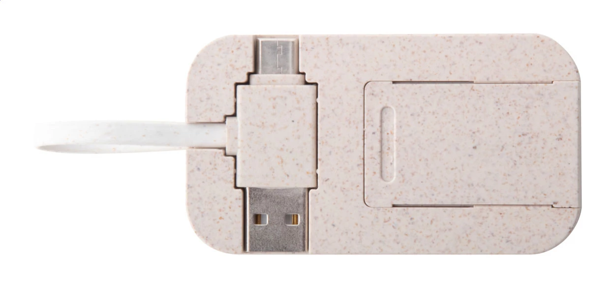 Hub USB z bambusa i ekologicznej słomy pszenicznej z funkcją uchwytu na telefon. Z 2 portami USB i 2 portami USB-C, USB 2.0. Zawiera kabel ze złączami USB i USB-C.