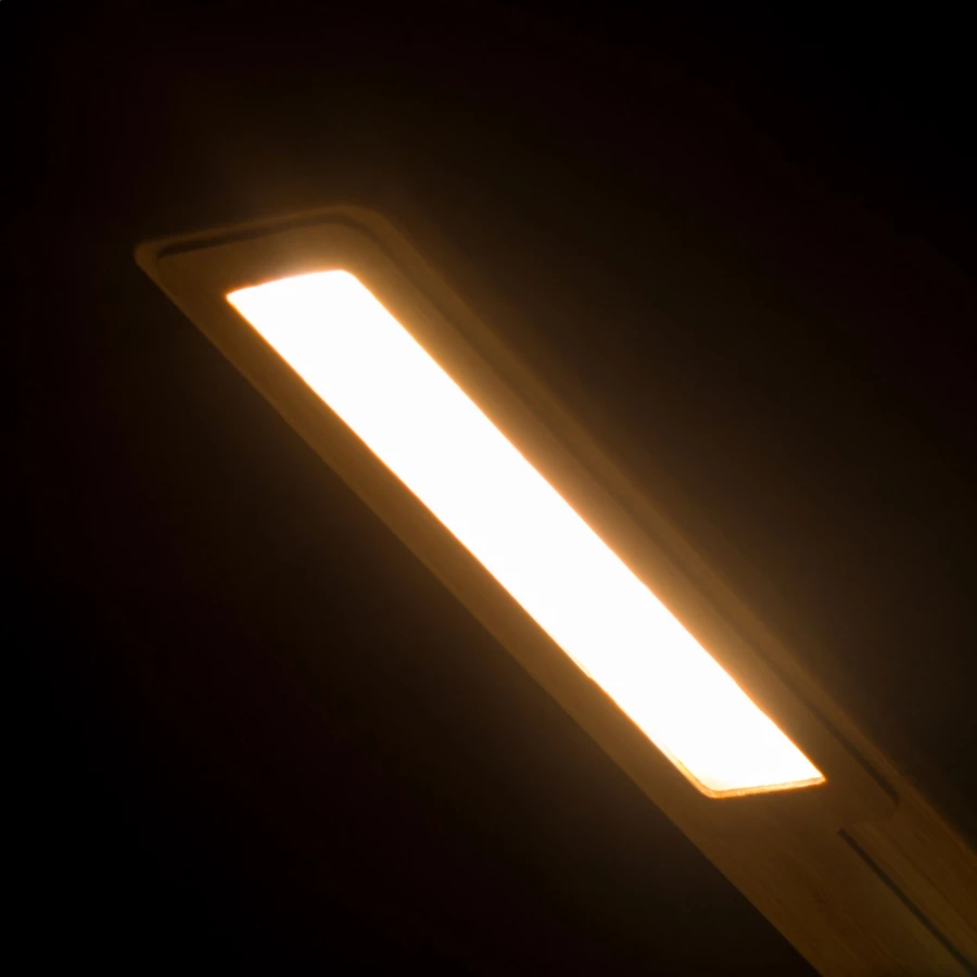 Bambusowa wielofunkcyjna lampka biurkowa z 25 diodami LED, regulowaną jasnością i timerem 1/2 godziny. Z wbudowaną szybką ładowarką indukcyjną (10W) i portem USB do ładowania 2 urządzeń jednocześnie (1 bezprzewodowo i 1 za pomocą kabla). W zestawie kabel USB.