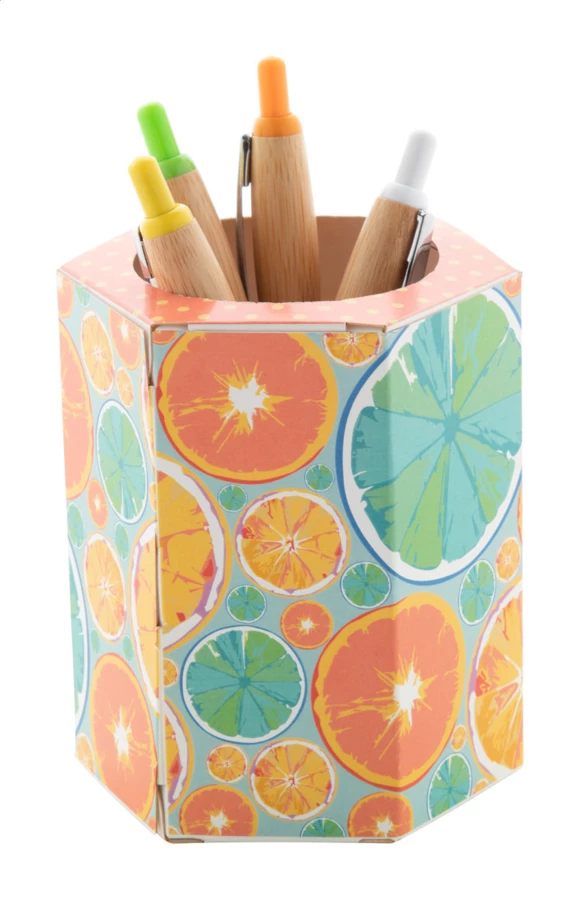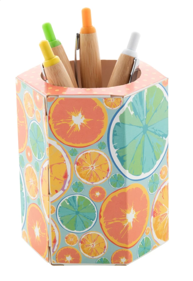 Personalizowany, w kształcie sześciokąta stojak na długopisy. Cena zawiera nadruk full kolor. Min. ilość: 100szt.