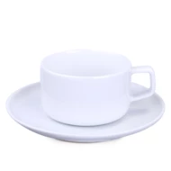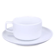 Elegancki i szykowny komplet porcelanowy z trzema rozmiarami filiżanek dla miłośników różnego rodzaju ciepłych napojów. Pozwalają kompleksowo promować idee marki. Wyprodukowano w UE.