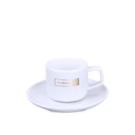 Elegancki i szykowny komplet porcelanowy z trzema rozmiarami filiżanek dla miłośników różnego rodzaju ciepłych napojów. Pozwalają kompleksowo promować idee marki. Wyprodukowano w UE.