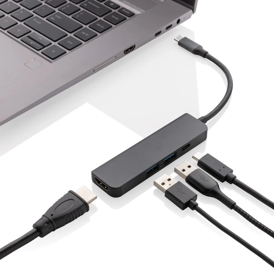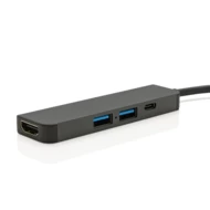 Hub USB 3.0, USB typu C Terra, wejście HDMI 4K, wykonany z aluminium z recyklingu z certyfikatem RCS, całkowita zawartość materiałów obliczona na podstawie wagi całkowitej przedmiotu: 58%, w pudełku z certyfikatem FSC® mix, ślad węglowy produktu: 0,78 kg CO2