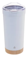 Kubek termiczny o podwójnych ściankach, izolowany próżniowo ze stali nierdzewnej pochodzącej z recyklingu, z bambusową podstawą i plastikową pokrywką do picia AS. 600ml.