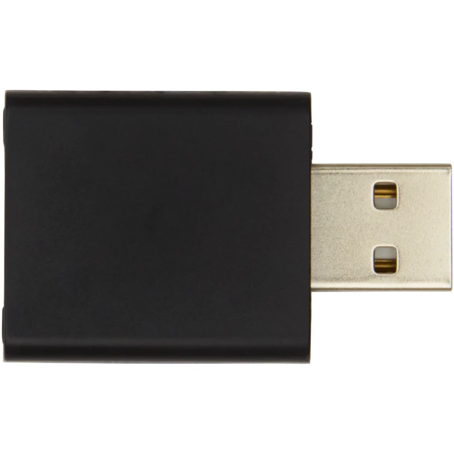 Blokada przesyłania danych USB, która zapobiega przypadkowej wymianie danych podczas podłączania urządzenia mobilnego do komputera lub publicznej stacji ładowania. Przedmiot ten blokuje transfer danych podczas ładowania urządzenia, zapobiegając kradzieży danych lub instalacji złośliwego oprogramowania.