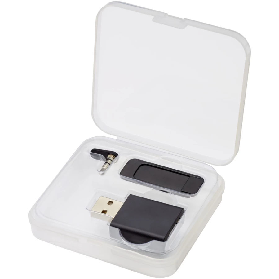 Zestaw do ochrony prywatności cyfrowej zawierający blokadę transferu danych USB, blokadę kamery internetowej i blokadę gniazda audio. Blokada transferu danych USB zapobiega przypadkowej wymianie danych podczas podłączania urządzenia mobilnego do komputera lub publicznej stacji ładowania. Przedmiot ten blokuje transfer danych podczas ładowania urządzenia, zapobiegając kradzieży danych lub instalacji złośliwego oprogramowania. Blokada kamery internetowej może być zamocowana przed kamerą internetową laptopa, aby zablokować niechciany dostęp do kamery internetowej. Blokada gniazda audio może być umieszczona w porcie AUX urządzenia, aby uniknąć podsłuchiwania rozmów przez osoby trzecie. Dostarczane w ochronnym etui.
