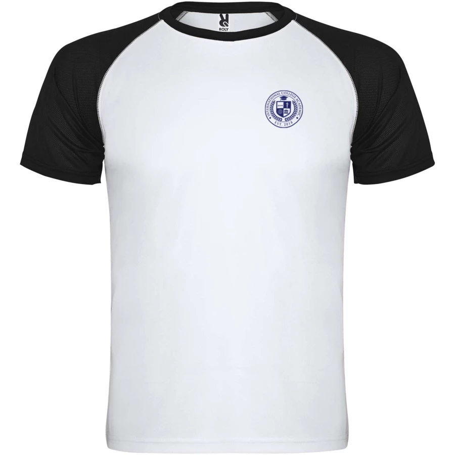 Techniczny i oddychający materiał. Raglanowe kontrastowe rękawy. Okrągły dekolt z kontrastowymi, wzmocnionymi, krytymi szwami. Usuwalna etykieta.
