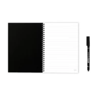 Notatnik A5 - „Infinitebook” - z elastyczną okładką i dopasowanymi kolorystycznie pierścieniami. Zawiera 15 gładkich i białych stron oraz czarny marker. Notatnik umożliwia łatwe pisanie i wymazywanie oraz jest praktycznym rozwiązaniem minimalizującym zużycie papieru. Notatki można skanować. Wyprodukowano w Europie. Dostarczany w kopercie z papieru kraft z naklejką. 148 x 210 mm