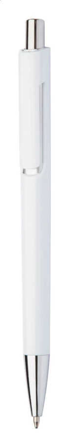 Plastikowy długopis z kolorowym korpusem i chromowanymi elementami. Z niebieskim wkładem.