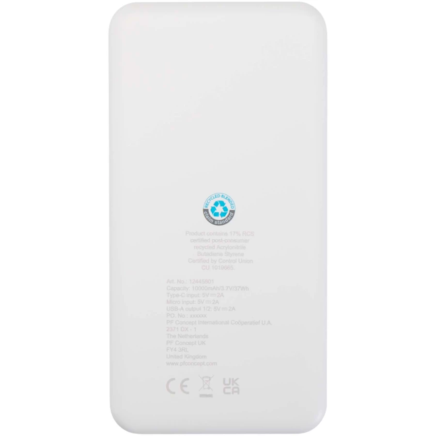Intan powerbank o pojemności 10 000 mAh i mocy 10 W z tworzyw sztucznych pochodzących z recyklingu (NPC-12445801)