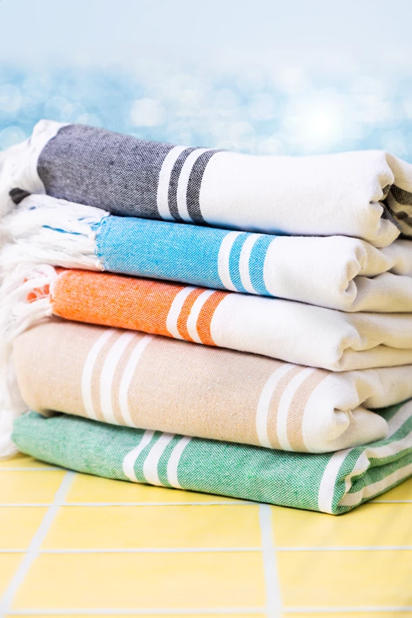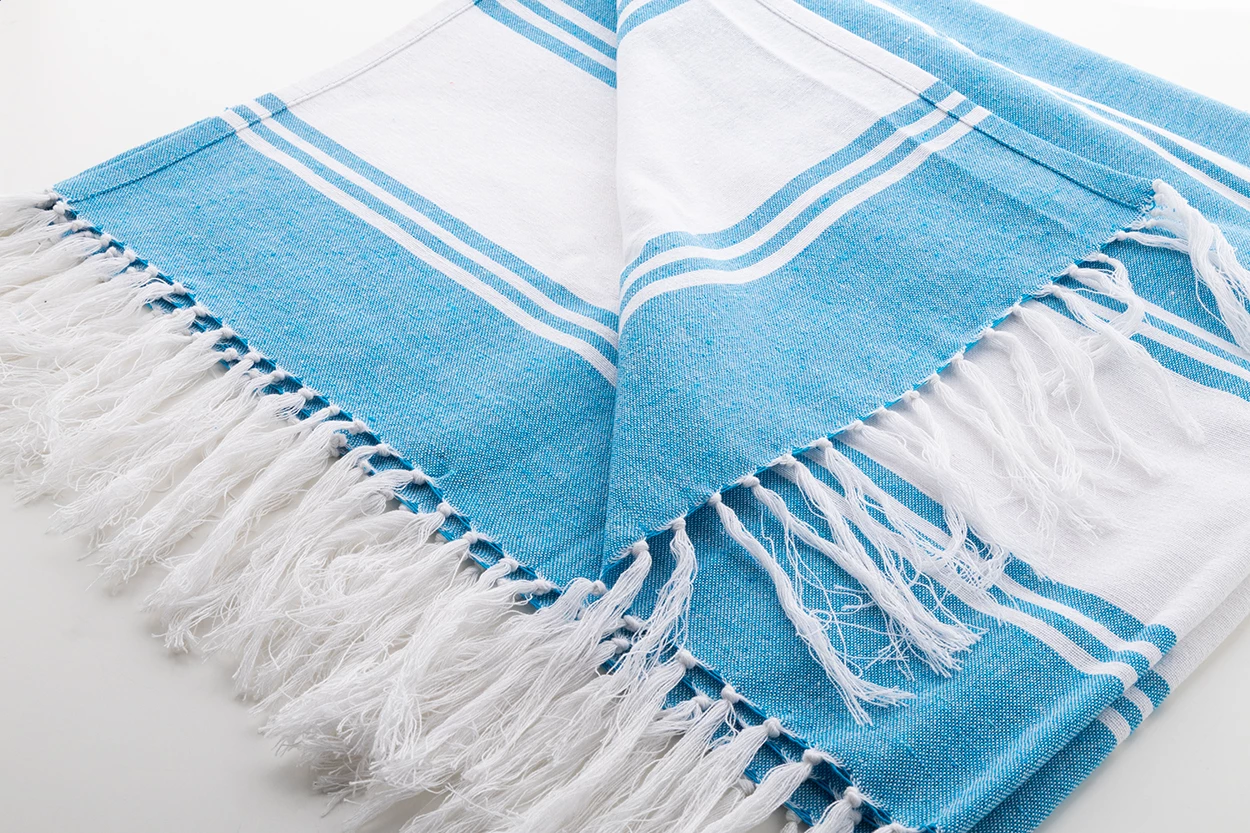 Dwukolorowy ręcznik plażowy typu pareo wykonany ze 100% bawełny, 210 g/m².