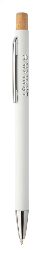 Długopis z aluminium pochodzącego z recyklingu z gumowanym wykończeniem i bambusowym włącznikiem oraz chromowanym wykończeniem. Ze specjalną powłoką pod grawer lustrzany. Niebieski wkład.