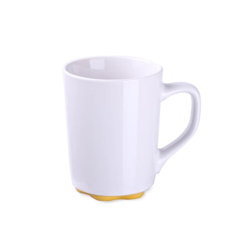 Biały kubek z oryginalnym i ciekawym spodem występującym w kilku kolorach. Proste ścianki dają duże możliwości w zakresie zdobień.