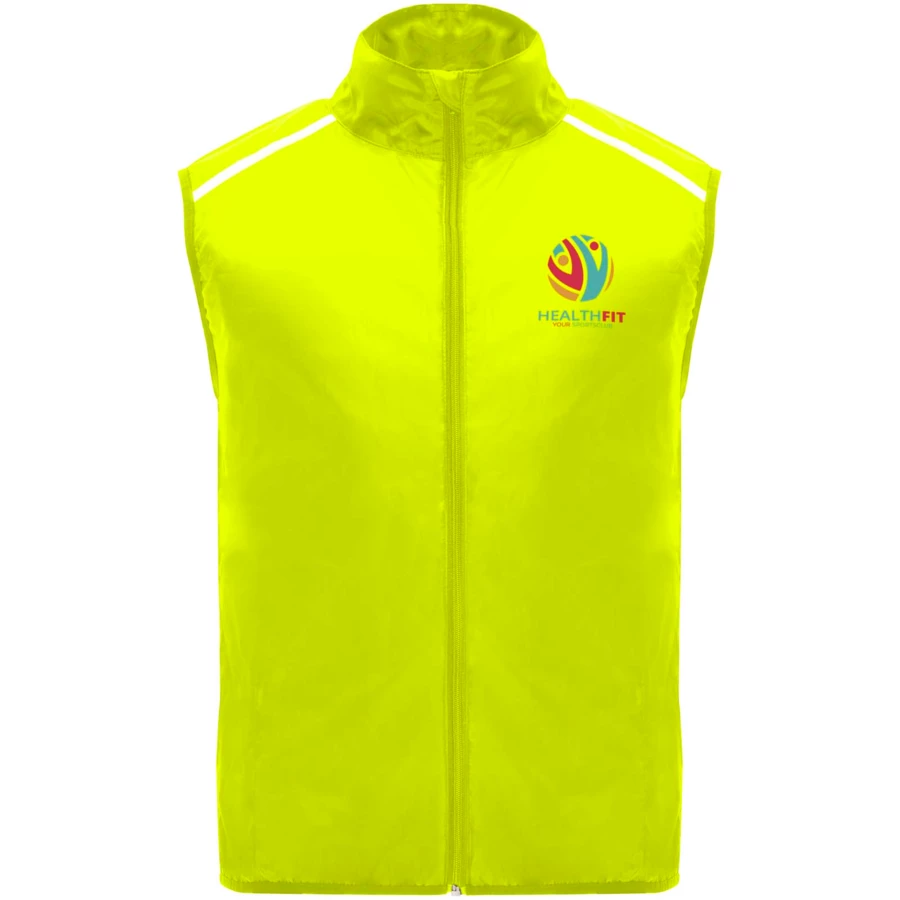Wiatroszczelny i oddychający. Zamek błyskawiczny z przodu z dopasowaną ochroną podbródka. Elastyczne wiązanie pod pachami i u dołu. Dolna część pleców z mikroperforowanego materiału. Dobrze widoczne detale na górze, z przodu i z tyłu. Kieszeń z elastycznym paskiem do przechowywania kamizelki i noszenia jej na nadgarstku. Usuwalna etykieta.