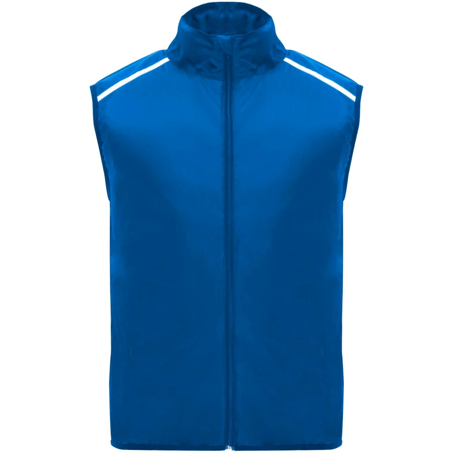 Wiatroszczelny i oddychający. Zamek błyskawiczny z przodu z dopasowaną ochroną podbródka. Elastyczne wiązanie pod pachami i u dołu. Dolna część pleców z mikroperforowanego materiału. Dobrze widoczne detale na górze, z przodu i z tyłu. Kieszeń z elastycznym paskiem do przechowywania kamizelki i noszenia jej na nadgarstku. Usuwalna etykieta.