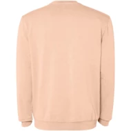Sweter unisex z wykończeniem uzyskanym dzięki poddaniu działaniu wybielacza w celu uzyskania smug lub odbarwień. Prążkowany ściągacz 2x1 przy dekolcie, mankiety i dół w tym samym kolorze. Wzmocnione szwy przy mankietach, u dołu, w pasie i otworach na ręce. Ścieg kryty ton w ton przy dekolcie.