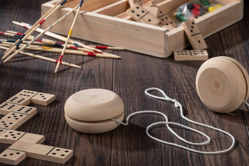 Klasyczne jo-jo wykonane z drewna. Powierzchnia surowa, nielakierowana.