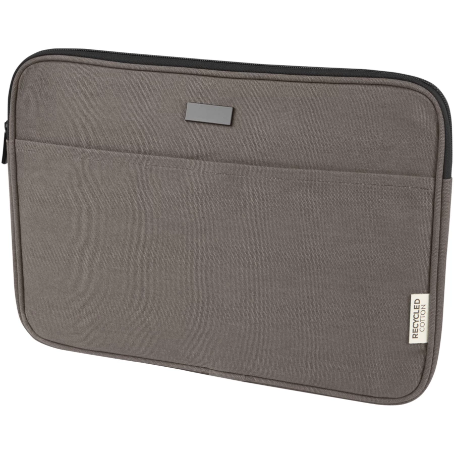 Etui na 14-calowego laptopa Joey zostało wykonane z bardzo trwałych i ekologicznych materiałów, płótna z recyklingu z certyfikatem GRS i podszewki z tworzywa RPET z certyfikatem GRS. Posiada ono chronioną przegrodę na laptopa oraz otwartą przednią kieszeń zapinaną na rzep. Ozdobna metalowa płytka może sprawić, że logo będzie świecić dzięki subtelnemu i matowemu wykończeniu.