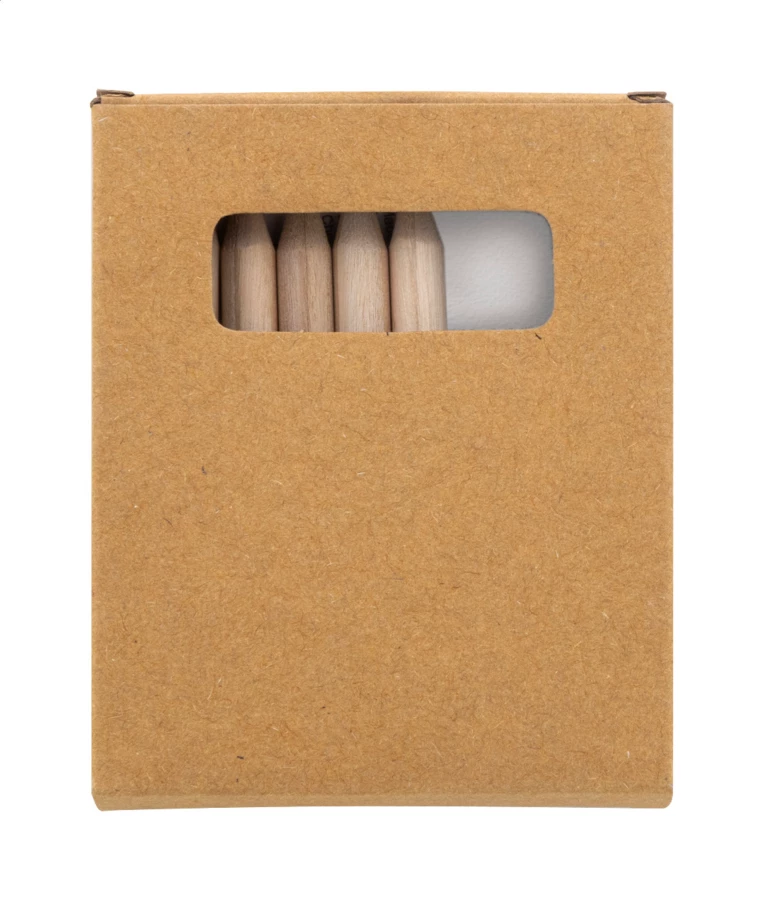 Świąteczny zestaw do kolorowania z 6 drewnianymi kredkami, temperówką i książeczką do kolorowania. W pudełku z papieru kraft.