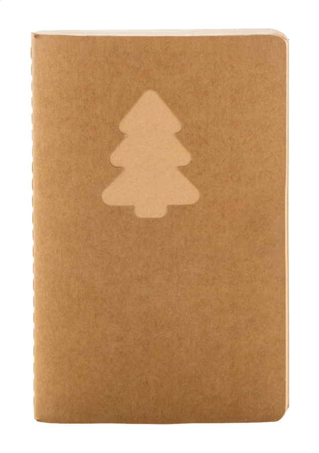 Notes w okładce z recyklingowanego papieru typu kraft z wyciętą choinką i 60 pustymi kartkami z recyklingowanego papieru typu kraft. Format A6.