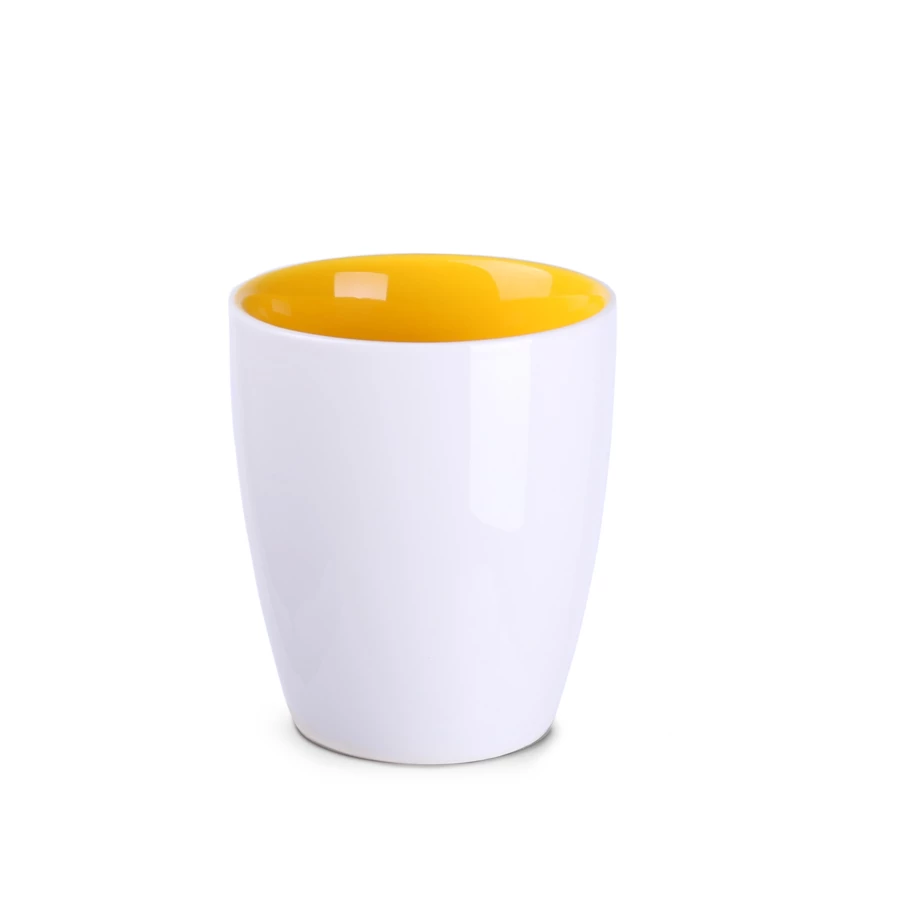 Ciekawy kubek wykonany z wysokiej jakości porcelany New Bone China. Posiada barwione wnętrze dostępne w 6 kolorach do wyboru. Idealnie dopasowany do ekspresów do kawy.
