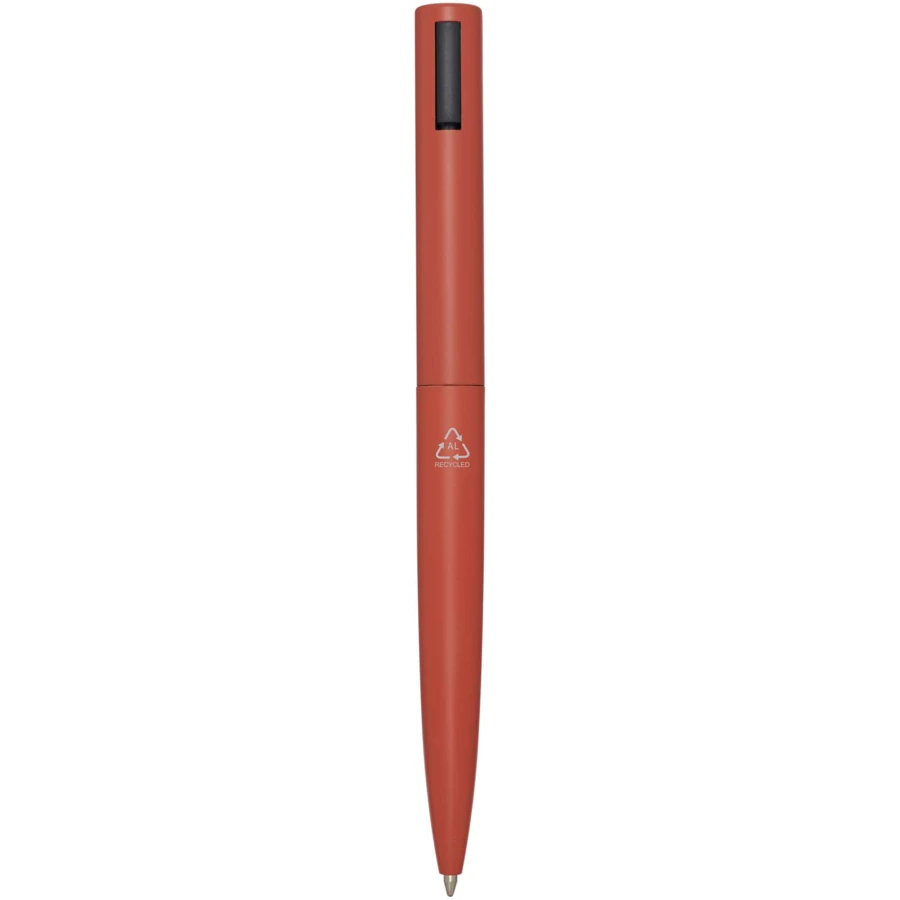 Długopis z górną częścią korpusu wykonaną z tworzyw sztucznych pochodzących z recyklingu i dolną częścią korpusu wykonaną z aluminium pochodzącego z recyklingu. Klips wykonany jest z żelaza. Kolor tuszu: Niebieski. Żywotność: 1000 metrów. Rozmiar stalówki: 1,0 mm.