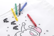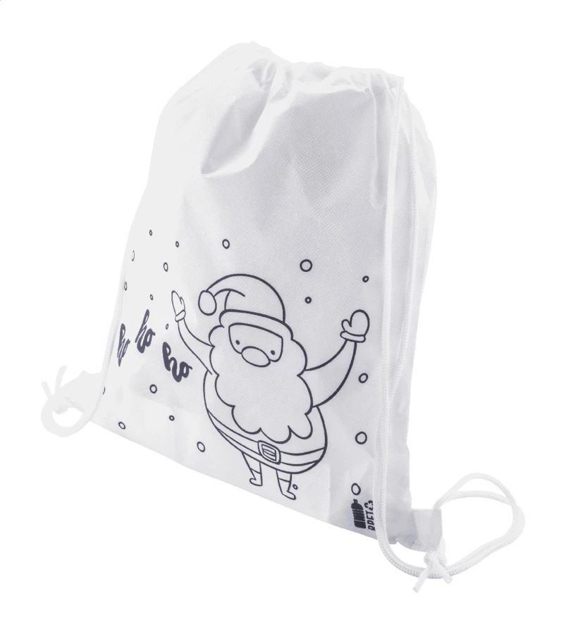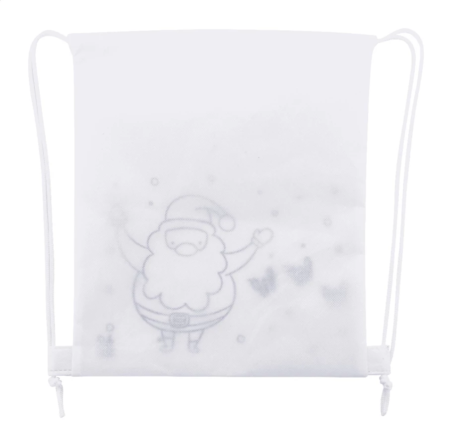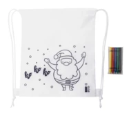 Kolorowanka świąteczna woreczek ze ściągaczem z włókniny RPET z 5 kredkami.