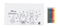Kolorowanka świąteczna - piórnik z włókniny RPET, zapinany na suwak z 5 kredkami.