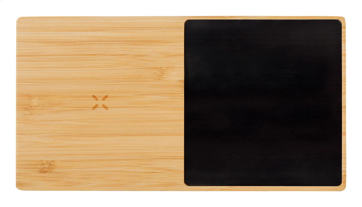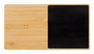 Bambusowy podgrzewacz do filiżanek z wbudowaną bezprzewodową szybką ładowarką indukcyjną (10W). Zawiera kabel USB.