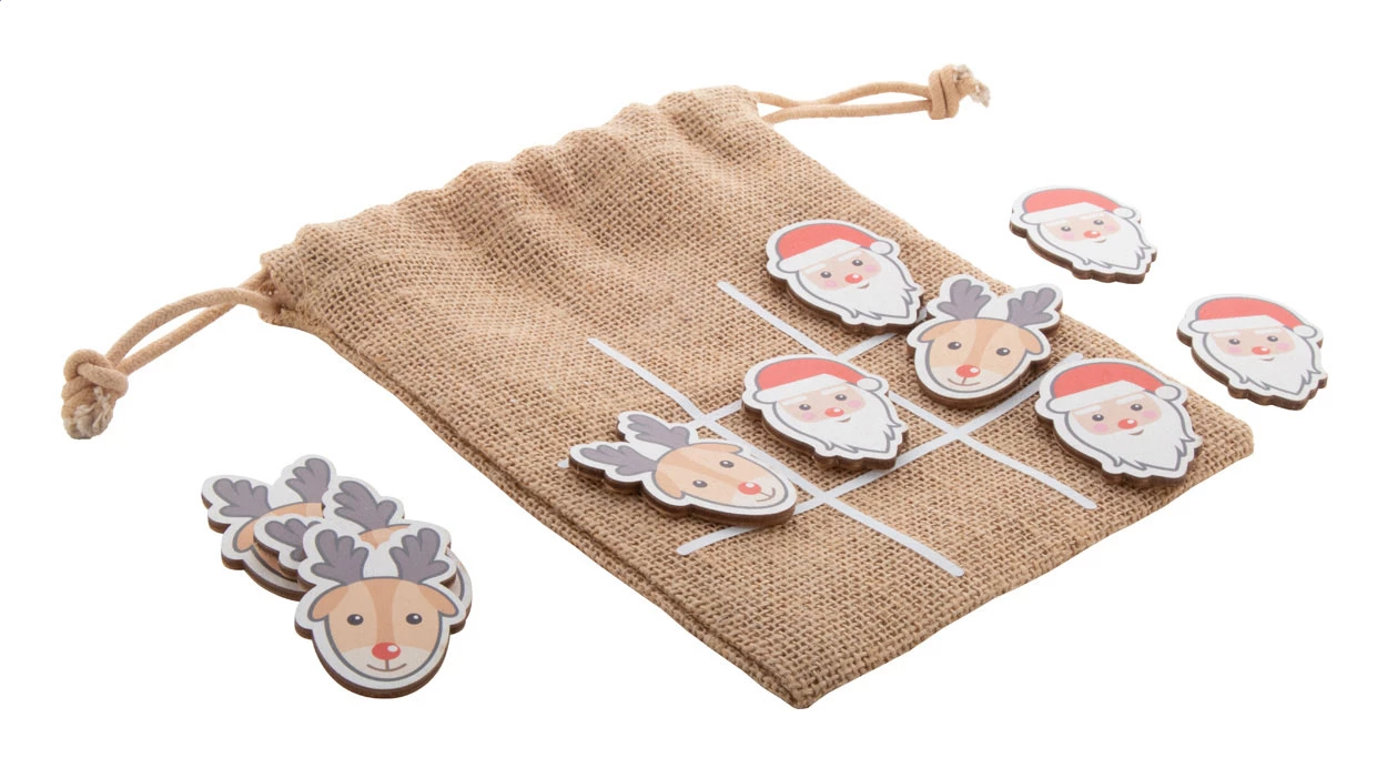 Świąteczna gra w kółko i krzyżyk ze sklejki brzozowej z 10 żetonami i jutowym etui.