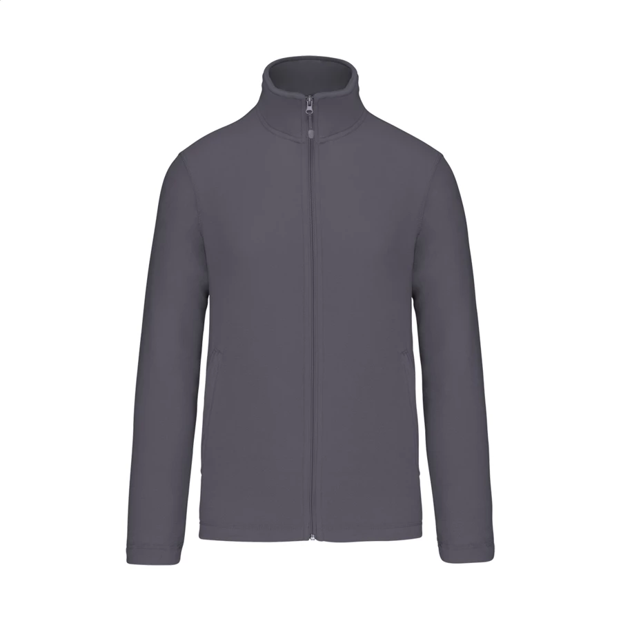 Kurtka z mikropolaru zapinana na zamek błyskawiczny i kieszeniami bocznymi zapinanymi na zamek. 100% poliester, 180 g/m². Produkt marki Kariban.