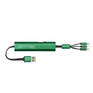 Kabel do ładowania z 4 końcówkami: USB, micro USB, USB-C oraz kompatybilną z urządzeniami iOS, moc maksymalna ładowania USB C do USB C 15W, pozostałe złącza 10W, co umożliwia jednoczesne ładowanie kilku urządzeń o różnych złączach, końcówka USB-C z funkcją transferu danych, długość kabla: 28 cm, obudowa kabla posiada dużą powierzchnię, która może zostać oznakowana i być nośnikiem logotypu lub hasła marketingowego, produkt wykonany z metalu i ABS