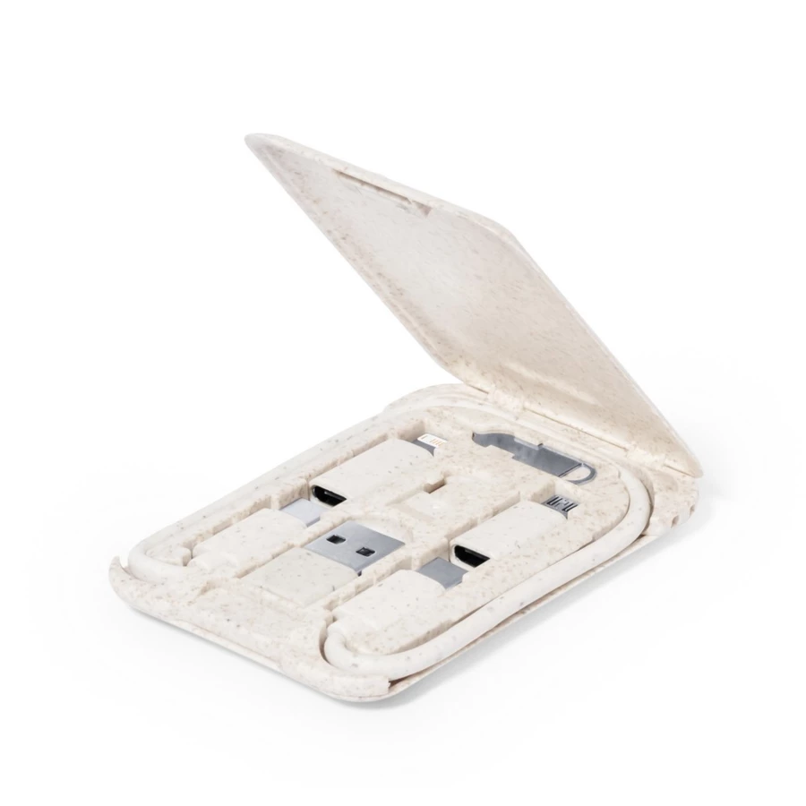 Kabel do ładowania i synchronizacji ze słomy pszenicznej, 3 adaptery w komplecie, stojak na telefon (NAX-V1358-00)