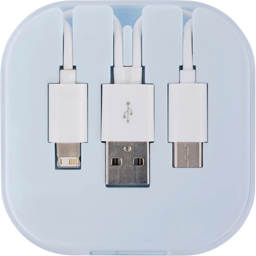 Kabel do ładowania z 3 końcówkami: USB, typu C i 2 w 1 (micro USB oraz kompatybilną z urządzeniami iOS), ok. 24 cm, w pudełku