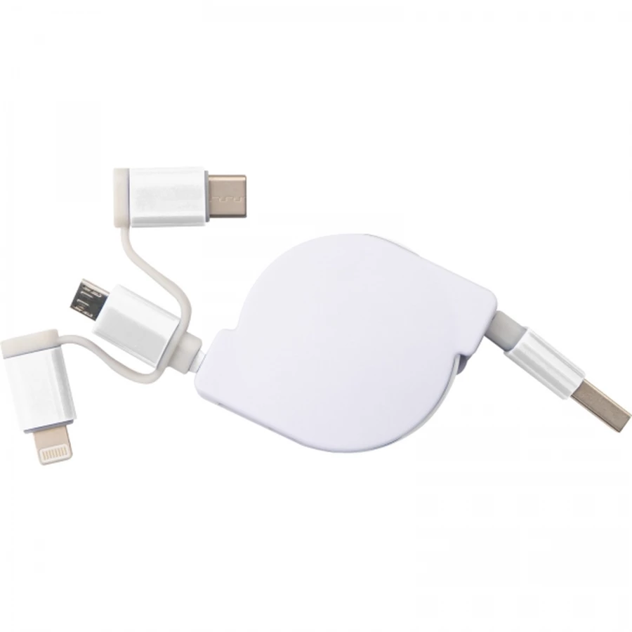Kabel do ładowania z 3 wtyczkami rozwijany - biały - (NMC-21652-06)