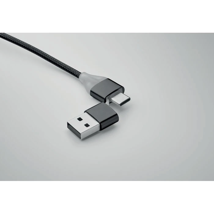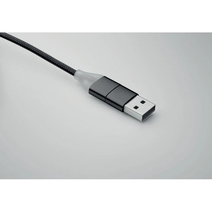 Brelok do kluczy z kablami do ładowania z wejściem: 2 w 1 typu C i typu A oraz micro-B (2 w 1 pin) i wyjściem typu C.