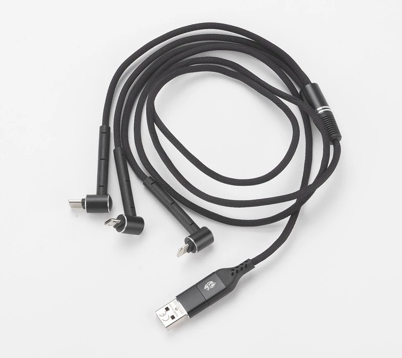 Kabel USB do ładowania RICO to aż sześć funkcji w jednym produkcie. Posiada dwa wejścia: USB-A i USB-C i trzy wyjścia: micro USB, USB-C i Lightning (iPhone). Dodatkowo, trzy końcówki posiadają specjalne wzmocnienia z tworzywa, które umożliwiają zastosowanie kabla jako stojaka na telefon! Sam przewód powleczony jest wytrzymałym materiałem i ma długość ok. 1,20 m. Tylko do ładowania.