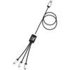 Kabel do ładowania z podświetlanym logo z gumowanym i metalowym wykończeniem wyposażony w trzy złącza (USB typu C, Android, iPhone). Umożliwia jednoczesne ładowanie do trzech urządzeń. Długość kabli (łącznie z wtyczkami): 10 cm. Całkowita długość kabla: 1 metr. Opakowanie wykonane jest z papieru i plastiku z recyklingu.