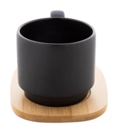 Wysokiej jakości ceramiczny kubek z matowym wykończeniem na zewnątrz i błyszczącym wnętrzem. W zestawie bambusowa tacka do serwowania. Pojemność 220 ml. Zapakowany w pudełko z papieru typu kraft.